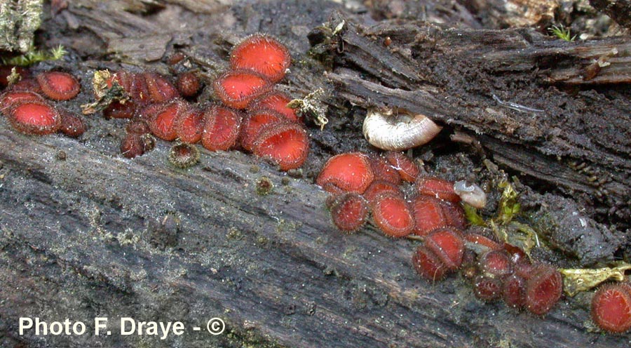Scutellinia scutellata (F. Draye, F. Dechany, JP. Duvivier, F. Meigniez) (spores - paraphyses - asques - poils)