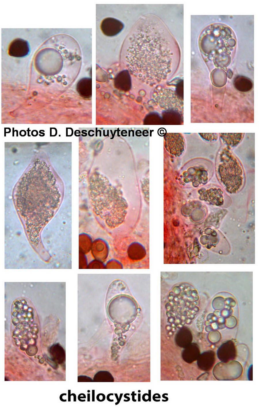 Pleurocystides absentes, Granulations des cellules clavées de l'épicutis, Granulations et les gouttelettes huileuses des cheilocystides Couleur lilas au disque