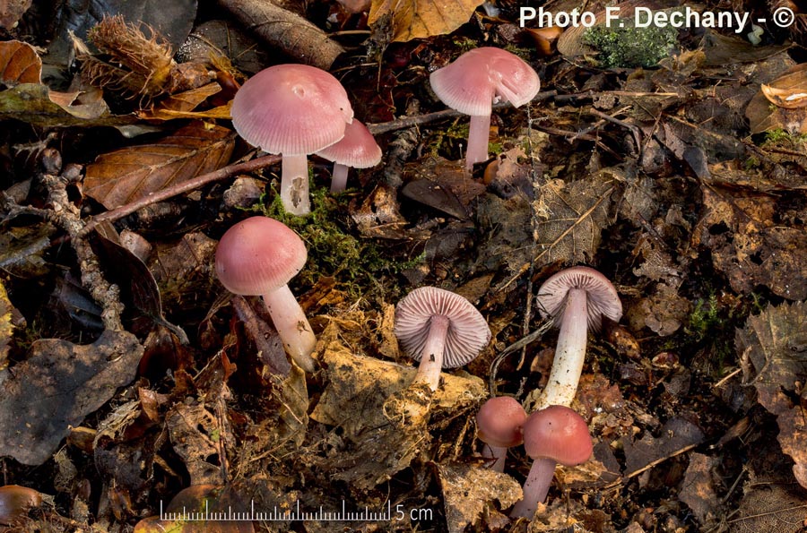 Mycena rosea (F. Draye, F. Dechany, E. Maradan) (fiche synthèse - cystides - hyphes - spores - trame)