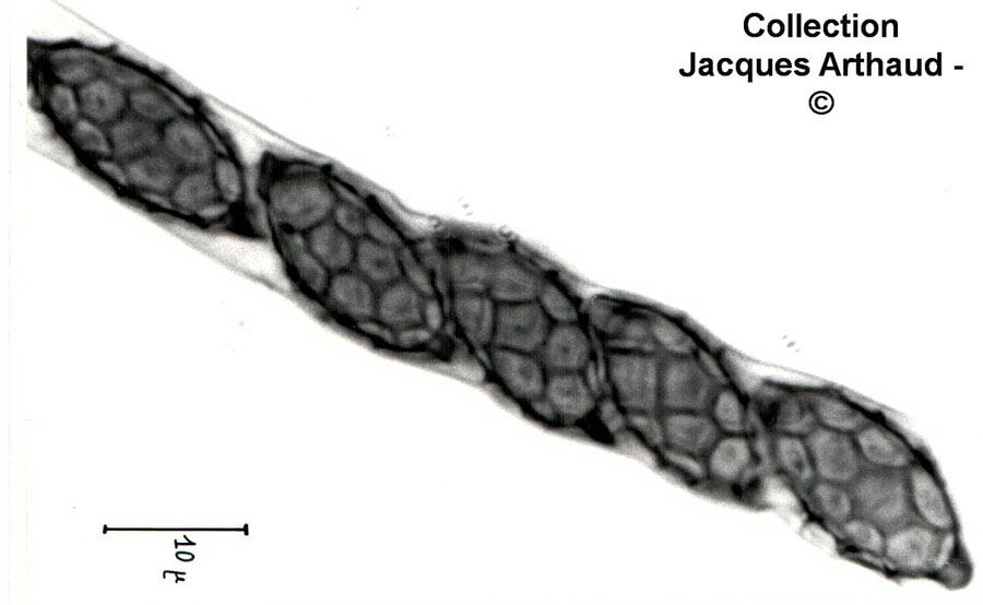Aleuria aurantia (Peziza aurantia) (JP. Duvivier, J. Beck-Ceccaldi, J. Arthaud) (champignon - asques - paraphyses - spores - coupe)