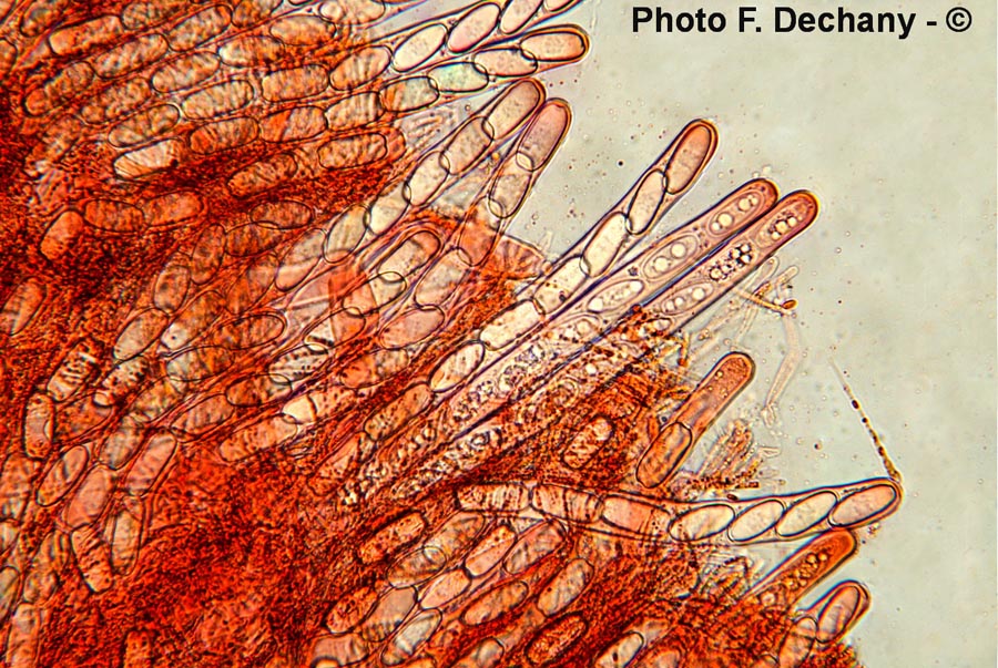Sarcoscypha jurana (F. Dechany) (champignon - spores - asques - paraphyses)
