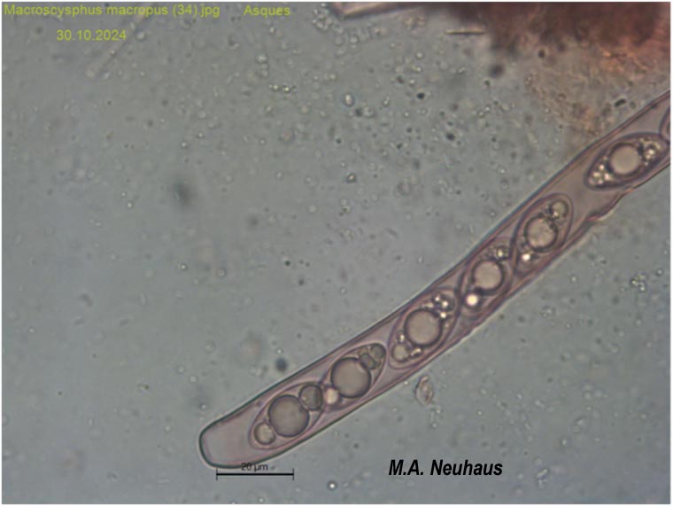 Helvella macropus (Macroscyphus macropus) (M.A. Neuhaus) (spores - champignon - fiche synthèse - hyphes - paraphyses)