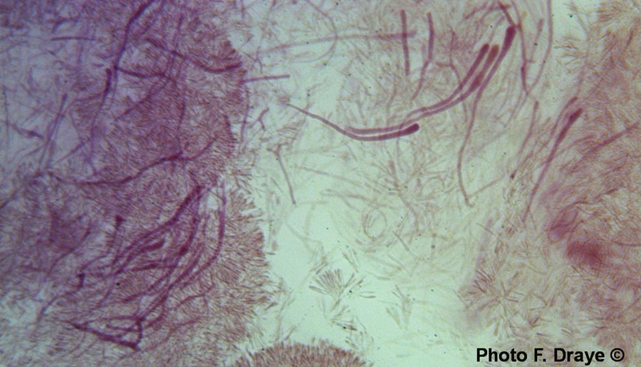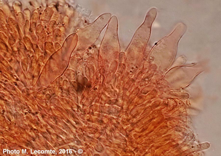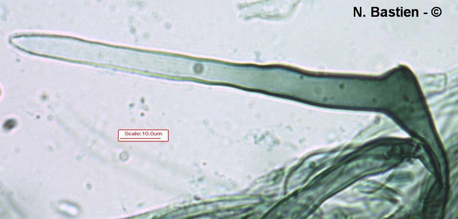 Caulocystides très abondantes sur le pied ; ici, traitées à la sulfovanilline (SV).