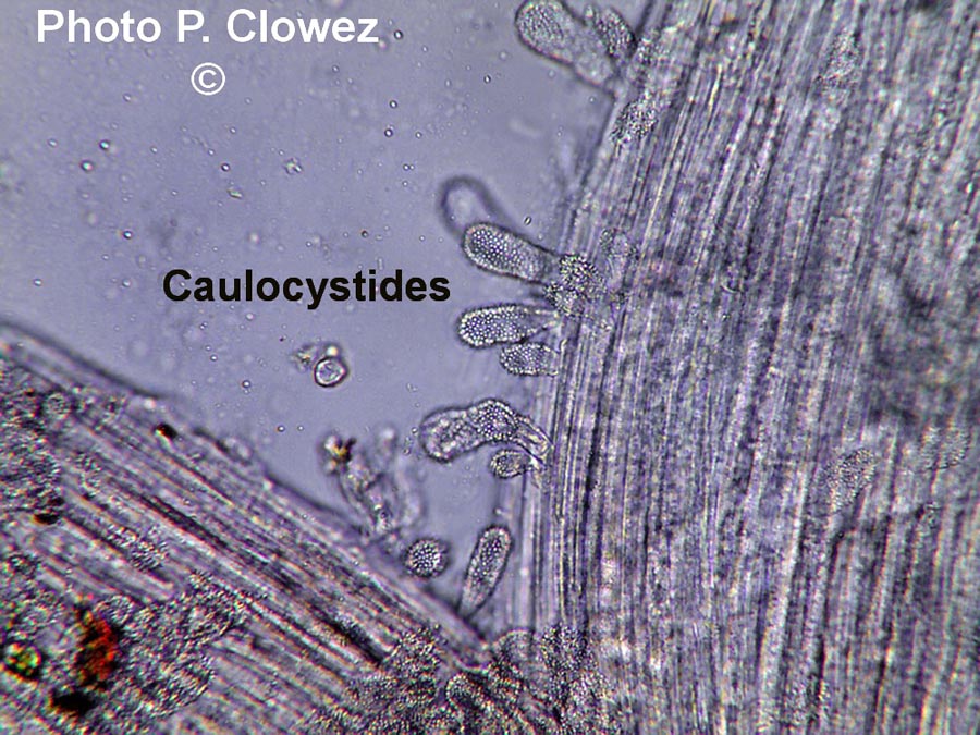 Mycena corynephora (A. Grobelny, P. Clowez) (champignon - spores - basides - poils)