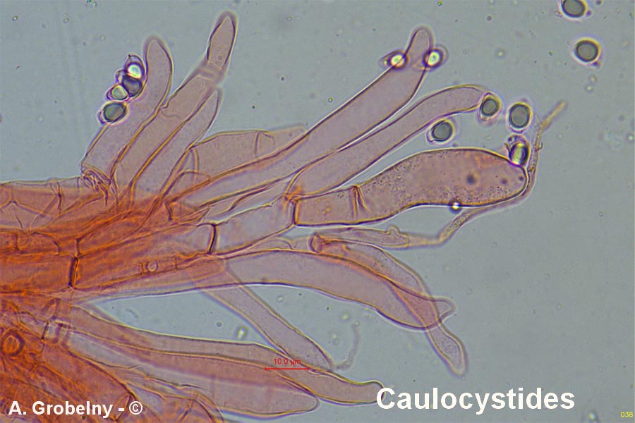 Mycena niveipes (H. Cochart, A. Grobelny) (champignon - cuticule - spores)
