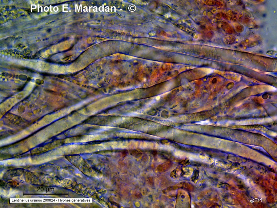 Lentinellus ursinus (P. Baumgart, E. Maradan) (champignon - fiche synthèse - cuticule - trame - spores)
