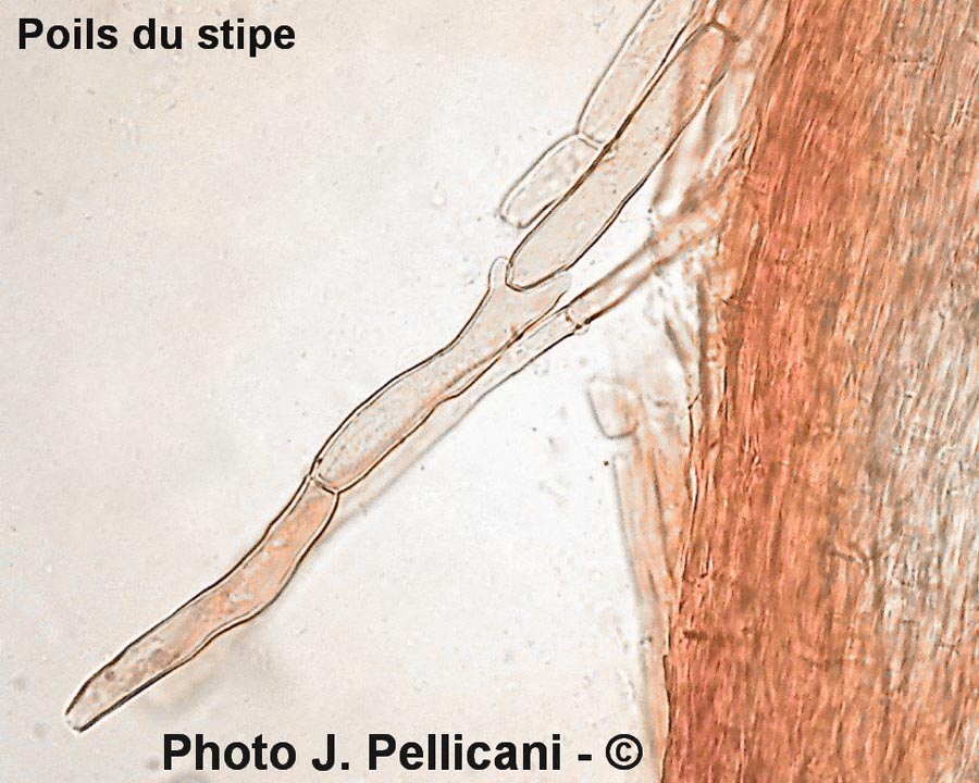 Myco-microscopie : poils et/ou sétules. Agrocybe cylindracea (Cyclocybe cylindracea, Agrocybe cylindrica) (J. Pellicani) (fiche synthèse - champignon)