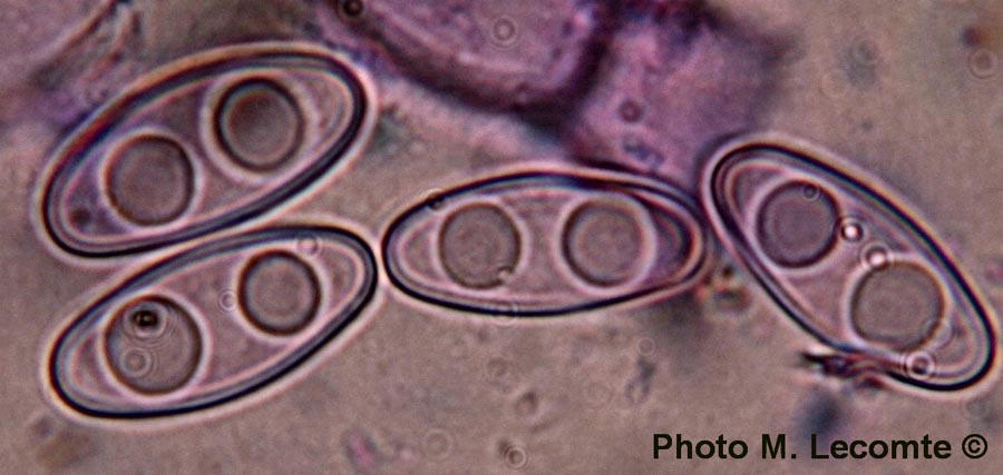 Myco-microscopie : ascospores. Otidea bufonia (M. Lecomte, J. Pellicani, B. Clesse) (champignon - asques - paraphyses - fiche synthèse)