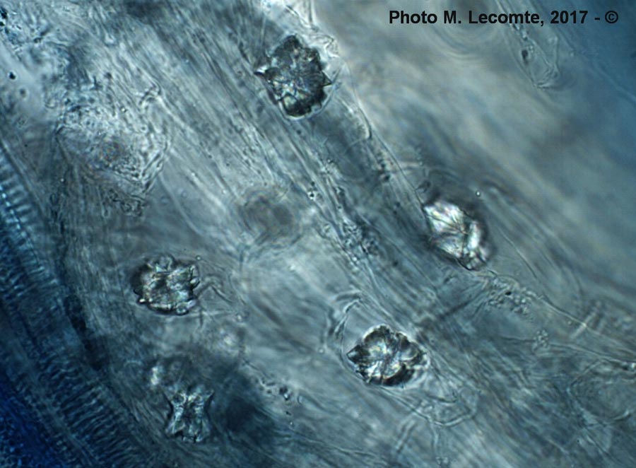 L’observation des racines montre la présence de nombreux cristaux d’oxalate de calcium.