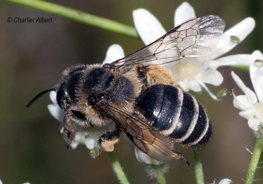 Hymenoptera – Andrenidae – Andrène à pattes rousses : andrène assez commune qui peut être confondue avec d’autres espèces du genre.