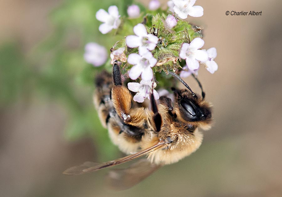 L'Andrène noirâtre, Femelle, Hymenoptera - Andrenidae – Cette belle abeille solitaire apparaît dès le printemps pour récolter le pollen et polliniser divers types de Rosaceae.