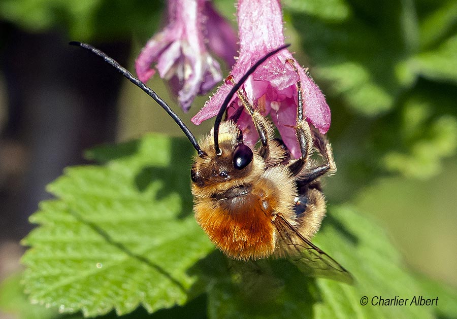 Hymenoptera – Apidae – Eucère noirâtre. Une des deux espèces présentes en Belgique avec E. longicornis, les mâles des deux espèces arborant de longues antennes.