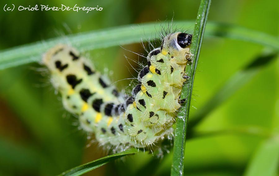 Entomologie. Zygaena filipendulae La zygène de la filipendule (Lepidoptera, Zygaenidae, Hétérocère) vole le jour. Elle apprécie les prés fleurit riches en graminées. Les plantes-hôtes sont principalement les légumineuses (lotier, mélilot...). La larve se nourrit de plusieurs plantes telles que graminées et de fabacées. Elle possède 6 points rouges sur chaque aile , couleur qui avertit les prédateurs de sa toxicité ; elle dégage du cyanure en cas d’attaque.