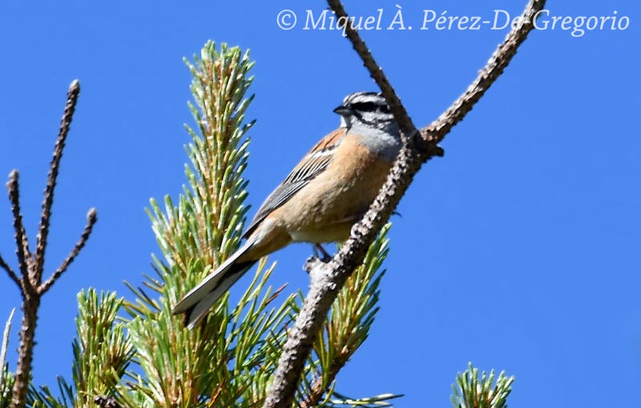 Ornithologie. Emberiza cia Le bruant fou (taille de 17 cm, famille des Emberizidae) apprécie les pentes ensoleillées et escarpées, les versants exposés des hautes vallées alpestres, les zones rocailleuses et les vignes. Il se nourrit de graines, d'insectes.
